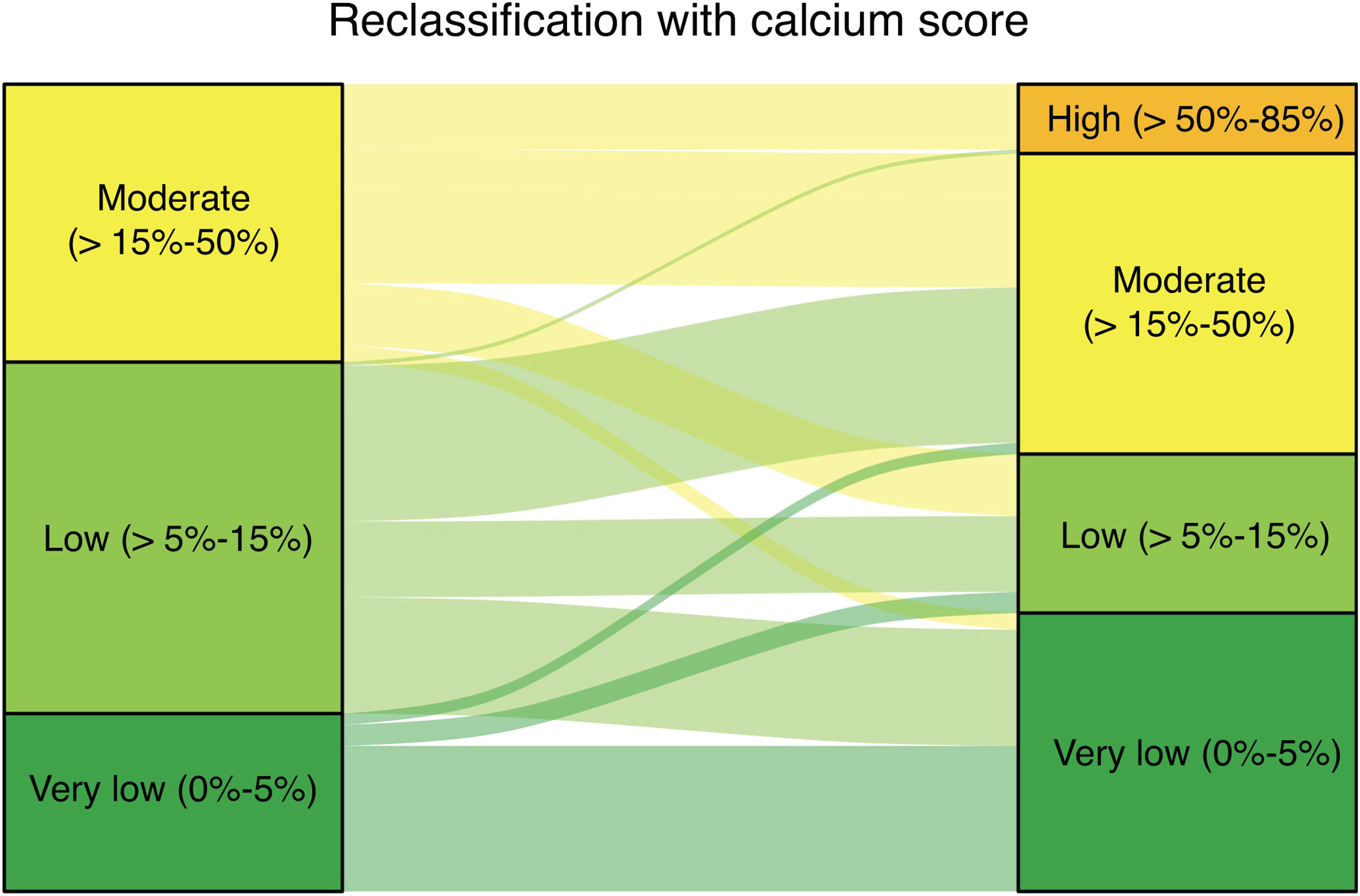 These studies and the findings of the present investigation support the use of guideline-based preselection tools and the integration of CACS to withhold advanced CAD testing in patients at very low risk. In the future, more sophisticated tools incorporating artificial intelligence and integrating multiple clinical variables may further improve CAD risk prediction without the need for CACS.20–23