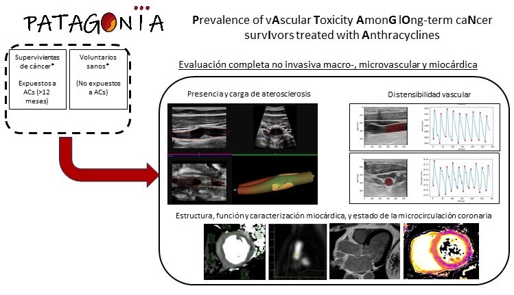 Métodos: El proyecto Prevalence of vAscular Toxicity AmonG lOng-term caNcer survIvors treated with Anthracyclines (PATAGONIA) tiene como objetivo estudiar en supervivientes de cáncer a largo plazo las consecuencias a nivel vascular del tratamiento con AC y los factores de riesgo asociados al desarrollo de toxicidad vascular y miocárdica tardía mediante técnicas de imagen no invasiva.