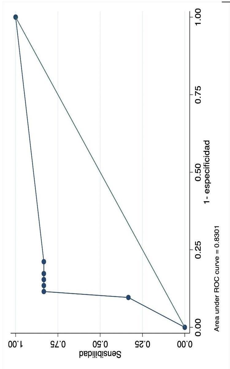 Curva ROC de probabilidad de desarrollar IC en pacientes con IM significativa y CoA.