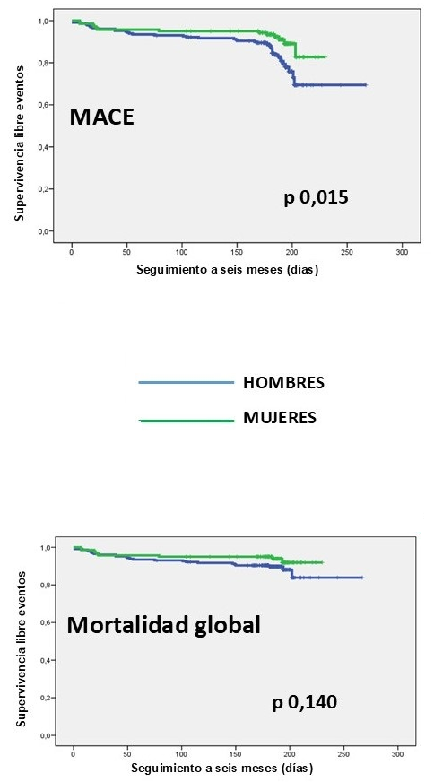 Pronóstico a 6 meses hombres frente a mujeres. MACE: eventos adversos cardiovasculares mayores.