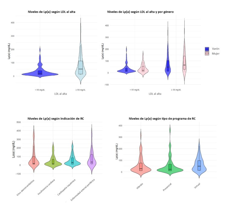Conclusiones: Los niveles basales elevados de Lp(a) parecen estar relacionados con un peor control del colesterol LDL al alta de RC. Estos hallazgos fueron consistentes entre sexos, tipos de programas e indicaciones de RC. Estos resultados sugieren que los pacientes con niveles elevados de Lp(a) podrían tener mayores dificultades para alcanzar los objetivos de LDL-C y, por lo tanto, necesitan terapias hipolipemiantes más intensivas desde el inicio.