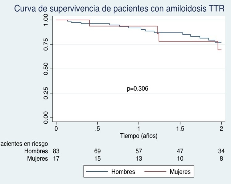 Figura de supervivencia de las mujeres frente a hombres ATTR.