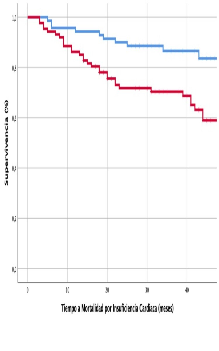 Comparación curvas mortalidad por IC en miocardiopatía dilatada isquémica frente a no isquémica en un hospital de tercer nivel.