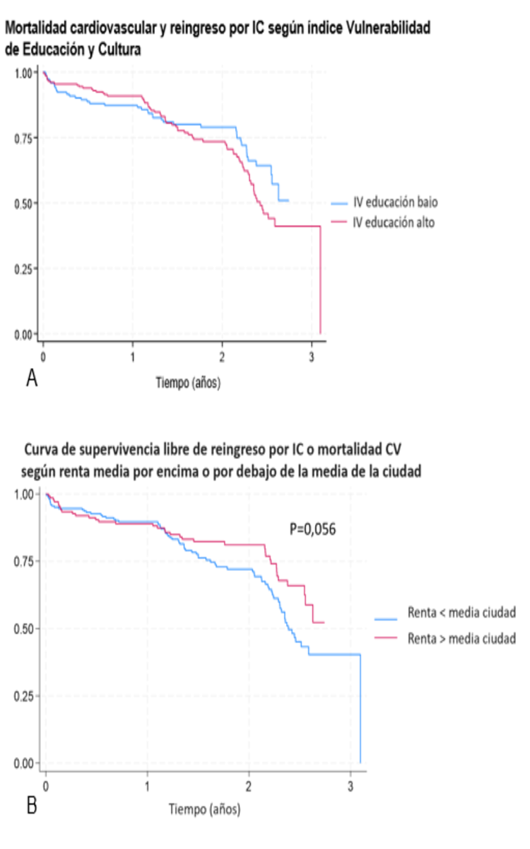 Conclusiones: En la evolución del paciente con IC, la presencia de vulnerabilidad económica, social y cultural tiene un impacto pronóstico negativo a medio plazo.