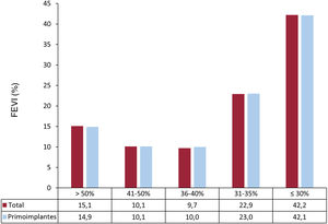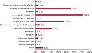 Al igual que en años previos, la prevención primaria de MSC fue la indicación principal de los primoimplantes de DAI (75,4%) seguida de la TVMS (12%), el síncope (6,6%) y la MSC (5,8%) (tabla 3).