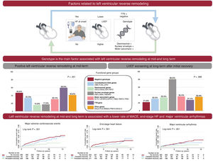 A negative genotype and TTN variants are associated with a higher likelihood of left ventricular reverse remodeling, whereas other positive genotypes are associated with a lower probability of remodeling. Despite an initial favorable response, a substantial proportion of patients subsequently experience recurrent deterioration of left ventricular ejection fraction, which is associated with an increased risk of cardiovascular events.