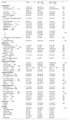 Patients with LVRR were older at diagnosis than patients without LVRR (51.7 years [IQR 42.6-63.4 years] vs 50.3 years [IQR 39.6-60.3 years]; P=.049), were more likely to be probands (91.5% vs 83.4%; P=.001), and had worse New York Heart Association functional class (table 1). In line with the finding of a lower proportion of patients with LVRR among participants with a positive genotype, a family history of DCM or SCD was more frequent in patients without LVRR. Regarding echocardiographic findings, LVEF was lower, LVEDD higher, right ventricular systolic dysfunction, and moderate or severe mitral regurgitation were more prevalent in patients who had LVRR (Table 1).