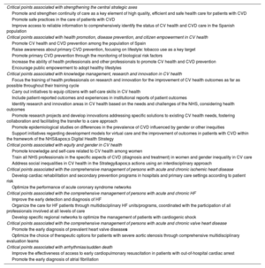 Final critical points selected in the Spanish Cardiovascular Strategy on Cardiovascular Health (ESCAV)