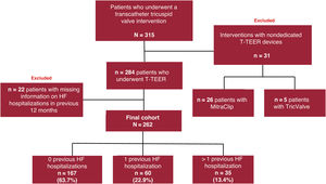 The prognostic impact of a history of heart failure hospitalizations (HFH) in patients undergoing transcatheter tricuspid edge-to-edge repair (T-TEER) has been scarcely studied. This study presents the results of the TRI-SPA registry, which includes data from 15 Spanish centers.