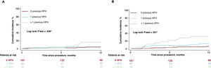 MethodsA multicenter, retrospective registry was conducted, including patients who underwent T-TEER between June 2020 and May 2023. Patients were classified into the 3 groups, based on the number of HFH in the 12 months prior to the procedure: no HFH, 1 HFH, and >1 HFH (recurrent). The primary endpoint was all-cause mortality and HFH.
