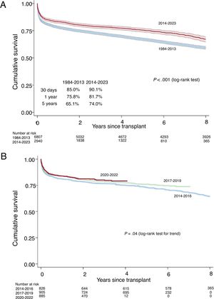 ConclusionsThe number of transplants performed in Spain showed an upward trend, with recipients with better clinical status and an increasing use of donation after circulatory death. Survival improved in the last triennium.