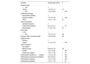 | Pretransplantcardiac arresta | 17.2 | 17.4 | 19.5 | <.001 | 28.7 |