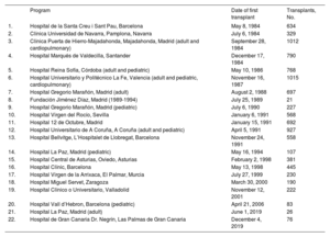 Programs participating in the Spanish heart transplant registry from 1984 to 2023 (by order of first transplant performed)