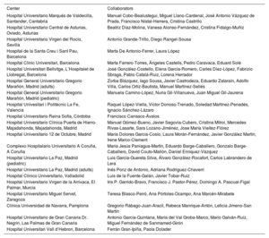 | Hospital Universitario Clínica Puerta de Hierro-Majadahonda, Majadahonda, Madrid | Manuel Gómez-Bueno, Javier Segovia-Cubero, Cristina Mitroi, Mercedes Rivas-Lasarte, Sara Lozano-Jiménez, Jose María Vieitez-Flórez |