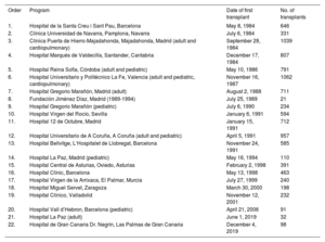 | Order | Program | Date of first transplant | No. of transplants |