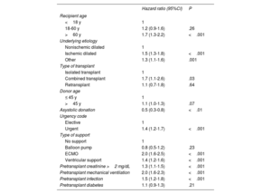| Pretransplantcardiac arresta | 17.2 | 19.4 | 25.1 | <.001 | 21.0 |