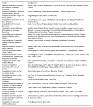 | Hospital Universitario Clínica Puerta de Hierro-Majadahonda, Majadahonda, Madrid | Javier Segovia-Cubero, Cristina Mitroi, Mercedes Rivas-Lasarte, Sara Lozano-Jiménez, Jose María Viéitez-Flórez |