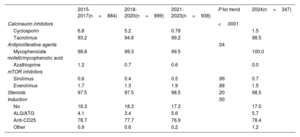 MethodsData were drawn from the Spanish heart transplant registry, which is updated annually. The analysis includes 347 transplants performed in 2024, as well as procedures from 2015 to 2023 (n=2721).
