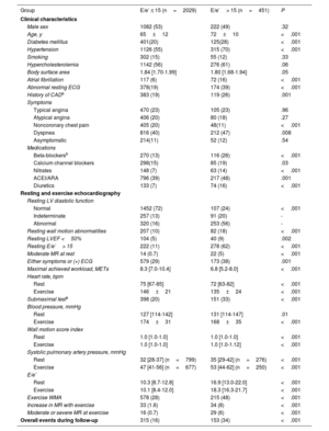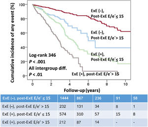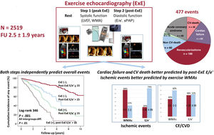 ConclusionsTwo-step exercise echocardiography assessing systolic and diastolic function predicts different types of events. Exercise echocardiography based only on systolic function might not capture the full spectrum of abnormalities.