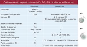 Catéteres disponibles actualmente en EuropaEn la actualidad, hay 2 catéteres diseñados específicamente para ASB disponibles en Europa: el Z-5 (NuMED for Children, Estados Unidos), que lleva utilizándose casi 25 años, y el Z-6, también desarrollado por NuMED. Aunque ambos catéteres comparten muchas características, también presentan algunas diferencias, como se resume en la figura 1. Los catéteres Z-5 y Z-6 están disponibles en 2 versiones: 5 Fr, con un balón no distensible con un diámetro de 9,5mm (volumen de 1ml) y 6 Fr, con un balón no distensible con un diámetro de 13,5mm (volumen de 2ml).