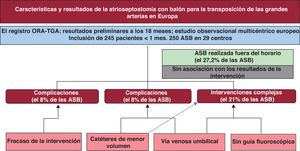 El porcentaje global de éxito alcanzó el 96%, sin muertes relacionadas con la intervención, y con unas cifras de complicaciones y complejidad del 8 y el 20,8%, respectivamente. Aunque no se produjeron muertes directamente relacionadas con la intervención, la necesidad de ECMO o de una operación urgente de inversión arterial debido a un fallo en la realización de la ASB continúa siendo preocupante, como se muestra en nuestra serie3.