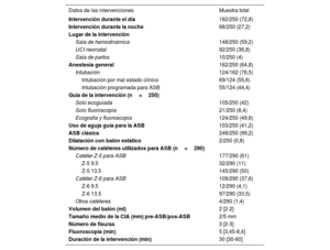 | Proporción de intervenciones con más de un catéter para ASB | 45/250 (18) |