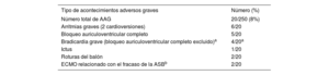 Entre los pacientes con bradicardia grave o bloqueo auriculoventricular completo, 7/9 (77,8%) requirieron reanimación cardiopulmonar.